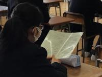 今日の午前中、「卒業生と語る会」が開かれ、3月2日に卒業した先輩7名が、これから進路実現を目指す在校生に対して、たくさんのアドバイスをしてくれました。密を避けるため、学年を分けて行われた4回の講座で、卒業生たちはそれぞれの学年に応じた内容を伝えてくれました。1,2年生は重要なポイントをメモしたり、うなずいたりして、真剣に話を聴いていました。