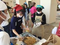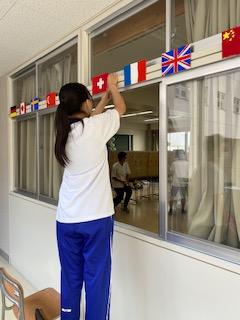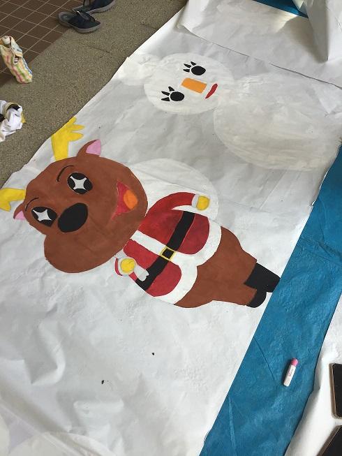 みんなでがんばってまーす。飾りつけもかわいくあすは、たくさんの人に楽しんでほしいですね