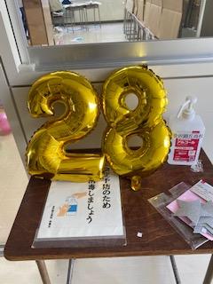 金色の28という文字の横にはしっかり消毒液。当然コロナ対策も怠りません。