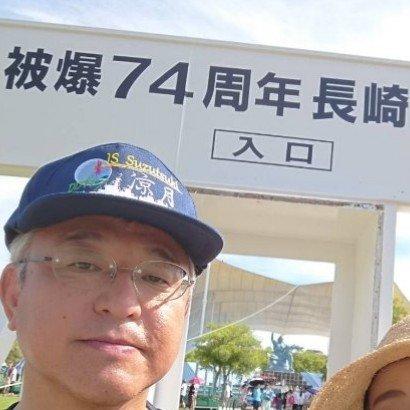 (昨年8月9日、長崎にて黙祷。奥に小さく平和祈念像。)