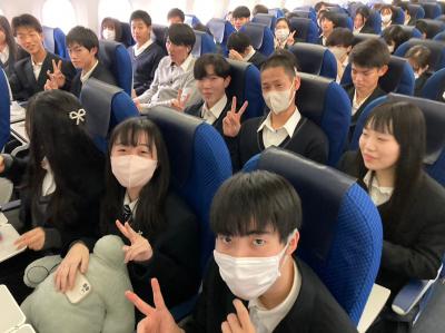 初めての飛行機にドキドキの生徒も