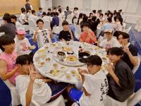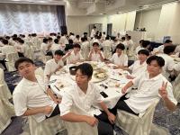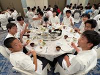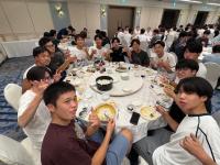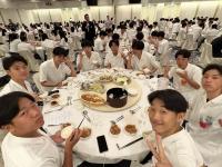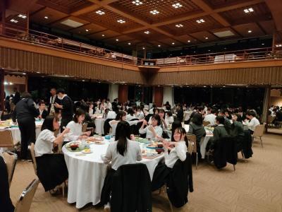 修学旅行最後の夕食となりました。全員が一斉に夕食を食べ始めるのはこの旅行中で初めてでしたが、生徒たちは疲れを見せずワイワイとした雰囲気で食事を楽しみました。