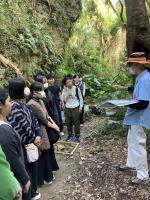 ガイドさんの話を聞いて、学びを深める生徒たち。