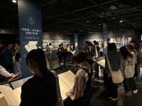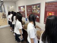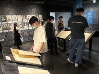 リニューアルされた資料館で展示物を見学。みんな真剣です。