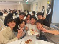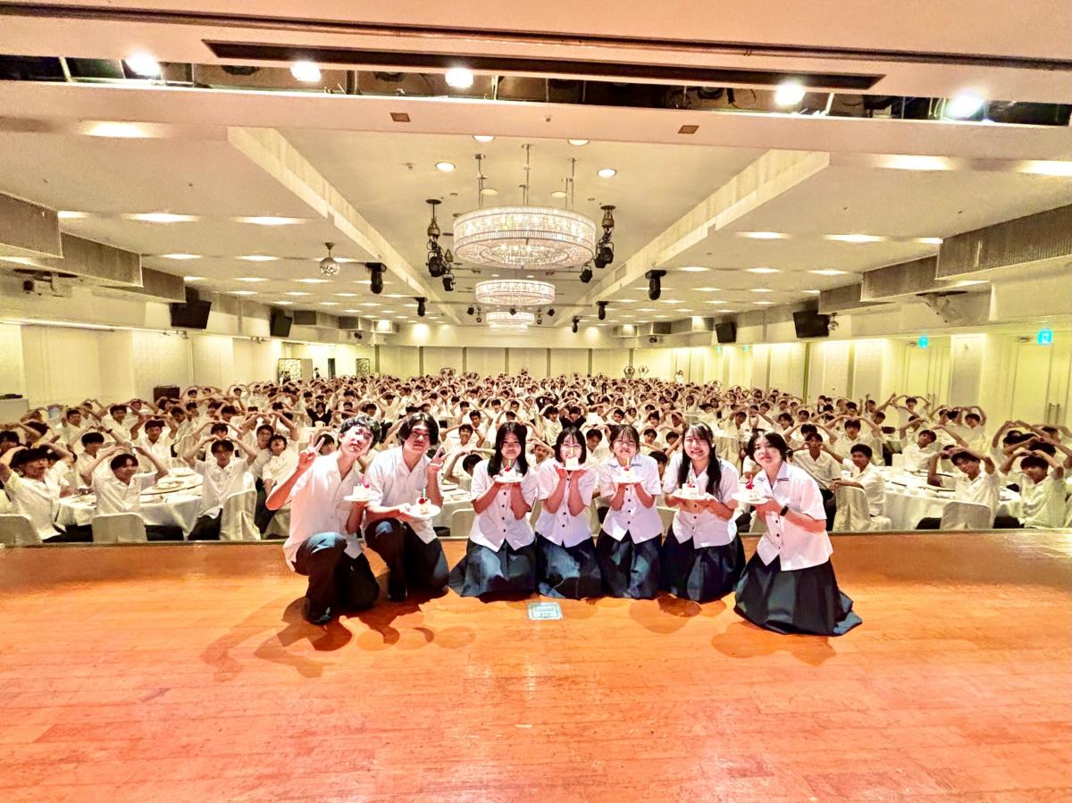 食事の最後には修学旅行期間中に誕生日を迎えた生徒をサプライズでお祝いしました。生徒全員でお祝いしている様子にとても一体感があり、修学旅行最後のイベントは大成功に終わりました。
