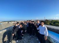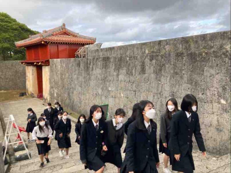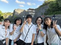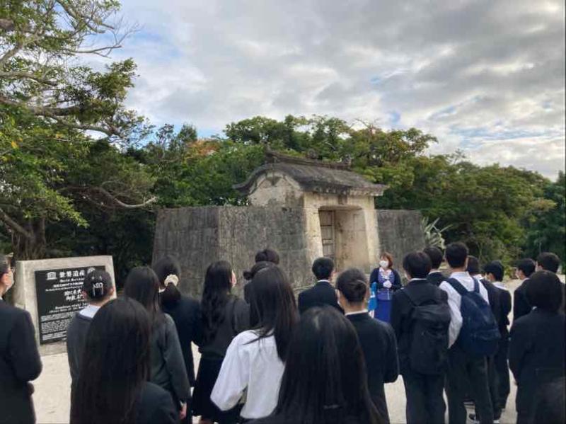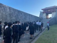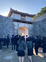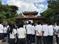 首里城公園を訪れた生徒たちは、外観から見える朱色の建物や壮大な石垣に圧倒されながら、バスガイドさんの説明に熱心に耳を傾けていました。復元が進む様子を間近で見たことで、歴史や文化を未来へ受け継ぐ大切さを実感していました。日本本土とは異なる文化の魅力を感じ、学びの多い時間となりました。