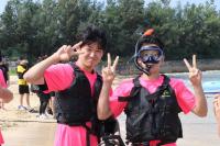 シュノーケリングでは泳げたはずの自分が嘘のように上手くいかず、足も水深が深くつかないため、大変な思いをしました。ボートに上がる時も足ヒレが外れてしまい、どうしようもなくなった時に友達がボートに引き上げてくれて助かりました。命の恩人です。【文系女子生徒】