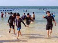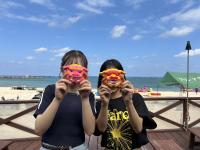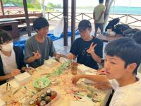 生徒の希望に合わせて、マリン体験、文化体験に分かれて活動を行いました。シュノーケリングの体験やビーチでの様々なアクティビティなど、それぞれが非常に楽しんでいる様子が見られました。シュノーケリングでは、海の底まで見える透明度の高い海に大興奮し、たくさんの魚が見えたことや餌付けができたことなどを教えてくれました。文化体験では、キャンドルづくりとシーサーの絵付けを楽しみました。個性豊かな絵付けで、中には非常にユニークでカラフルなシーサーをイメージしている生徒もいました。いいお土産になりましたね。