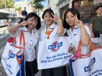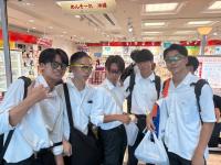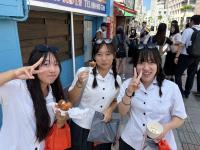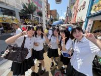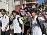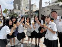 午後は、「奇跡の1マイル」と呼ばれた那覇国際通りで自主研修を行いました。班ごとに相談して決めたコースを巡りながら、計画的に行動しました。研修はランチタイムを兼ねており、ステーキやアイスなど人気のお店では、生徒たちの笑顔があふれていました。