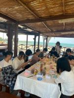 「海辺でのバーベキューでは、忙しく食材を焼きながらもワイワイ盛り上がりました。香ばしい匂いと波の音に包まれて、自然の中で食べる楽しさを実感しました。みんなで一緒に食べて笑う時間の中で、仲間との距離もぐっと縮まった気がします。」(文系男子)
