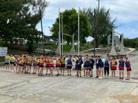 天気は晴れに変わり、気温は30度程度。少し蒸し暑いですが、生徒も先生も元気に活動しています。