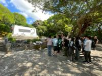 また、例年のコースとは違い、今年度は糸数壕(アブチラガマ)を訪れました。ガイドの方の説明を受けながら暗い洞窟内を進み、戦時中の方々が身を寄せていた厳しい環境を体感しました。(壕の中は撮影禁止のため、写真は入り口までです)