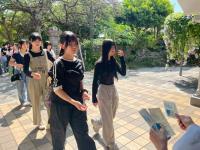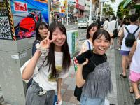 午後は国際通りをグループごとに散策しました。お土産を買う人、ランチを楽しむ人、ゆいレールに乗ってみる人など、それぞれが思い思いに楽しんでいました。カメラを向けた時の皆さん(先生を含む)の笑顔が素敵です。
