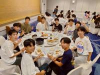 本日の夕食はBBQビュッフェレストランとと和洋中ビュッフェの2つから選択して自由に食べられる豪華ディナーです。BBQでは、イルミネーションをバックにアメリカンなBBQを楽しみました。和洋中ビュッフェでは、たくさんの沖縄料理を含む何十種類もある様々な料理からデザートまで楽しみました。どちらかというとBBQの方が人気だったようですが、生徒たちはここまでの疲れが嘘のように、豪華なディナーを思う存分楽しんでいました。
