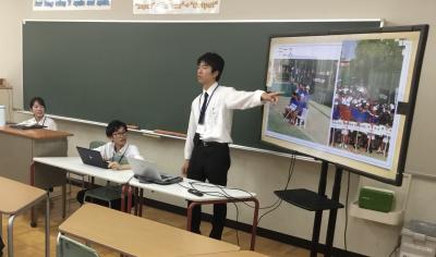 ALTのセバスチャン先生のご家族3人が、本校に来てくれました。3年生は、石川県紹介のスライドを作成し、英語で紹介をしました。