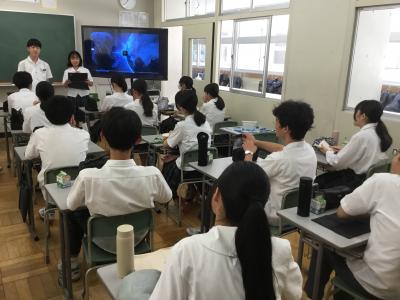 今日は、自分が1番いいと思ったポスターの作成者に、自分の意見を伝える時間でした。どの生徒も、とてもいきいきと自分の意見をのべていました。