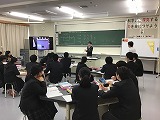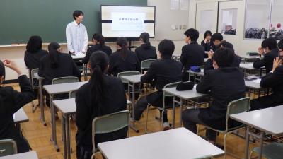 高校の国語の内容をふまえ、中3の3学期ですべきことをお話してくださいました。また、現在高校3年生にアンケートをとってくださり、大学進学に向けて他教科についてもお話をしていただきました。