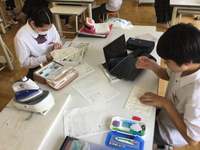 今日はまず、生産(ものづくり)の視点で、実際に紙コップをつくりました。生徒達は、グループ内で、社長、設計担当、組立担当、会計担当と役割分担し、限られた材料と設備で、どうやったら利益がでるか、いかにコストダウンをするかという視点で、試行錯誤していました。