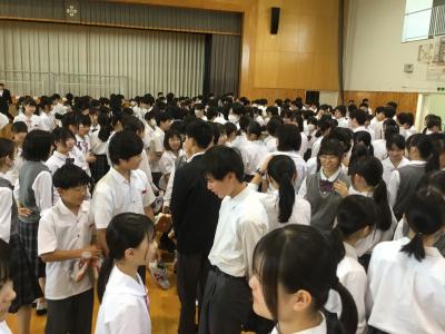 また、すでに、東北大学や早稲田大学等の難関大学に自己推薦制度で合格した先輩達にもきていただき、生の声をきくこともできました。錦中生の強み(全教科の表現力、英語のリスニング力、協働的に学べる力等)を活かし、自分のキャリアを真剣に考える貴重な機会となりました。