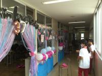 カバンや靴が一列に並んでいる光景はどの学校でも見られる光景です。しかし、靴が縦に重ねてあるのは驚きました。きっと、場所をとらないように工夫したのでしょう。