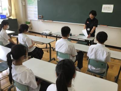石川県警察本部 人身安全・少年保護対策課 少年サポートセンターの川淵さまに来ていただき、1学年で、いじめ防止教室を行いました。