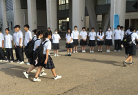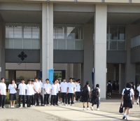 また、誰かの前を横切る際には必ず姿勢を低くし、礼儀正しく通り過ぎていきます。先生の話を聞く姿勢・立ち姿は実に美しいものでした。本校の生徒らしいと思いました。