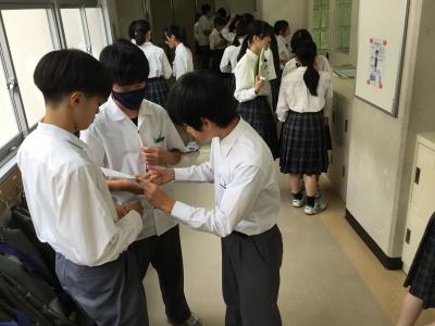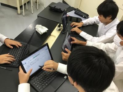 実験が終わると、リフレクションの時間です。実験が終わったグループから、自分達で判断し、自主的に今日の学びを振り返り、ノートにまとめたり、次回の準備を始めたりする姿が見られました。本校の生徒達の、自律的に学ぶ姿が見られ嬉しく思いました。