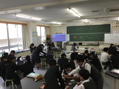 3階、4階、5階からも「生徒」の声ばかりが聞こえてきます。生徒が主体的に学ぶすてきな教室の「音」です。