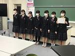 会では、海上自衛官の「看護官」の仕事内容のお話だけでなく、参加生徒からのたくさんの質問にもざっくばらんに答えていただきました。西川さんは、お子さんを出産され現在育児休業中です。育児等大変忙しい中来校いただき、本当にありがとうございました。参加した生徒達にとっても今後の生き方を見つめるよい機会となりました。