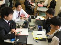 1年生の道徳の時間では「ありがとう」の言葉の不思議な力について、生徒達がグループ対話をしていました。自分の考えを話すと、それを他の仲間がきちんと受け止めて聞いてくれるので、グループ対話の時間はとても楽しそうです。どの生徒も自分らしくのびのびと授業に取り組んでいます。