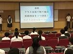 今日はまず、7月開催の中学生合唱コンクールのダイジェスト版を各クラスで視聴、続いて第1フロアで高校1年生クラス別舞台発表を前半クラス、後半クラスに分かれて参観しました。