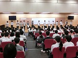 4月11日(木)中高対面式に続いて、1年生に対しての新入生歓迎会と部活動説明会が行われました。生徒会による1年間の行事の説明と各部による紹介に対して、新入生が興味津々の表情で話を聴いている様子が見られました。