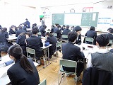 2月21日(木)の午後、EIZO株式会社、北陸銀行、北陸先端科学技術大学、金沢工業大学、金沢星稜大学、北陸大学、金沢学院大学、金城大学、北陸学院大学、金沢星稜女子短期大学、小松短期大学の方をお招きしてグループ別キャリア教育を行いました。全学年を縦割りの13のグループに分け、司会や記録などの運営も生徒自身で行いました。真剣に話を聴いたり、積極的に参加して、その後の感想発表でも意欲的に自分の考えを発表していました。