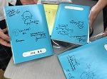 次に、スプレッドシートを用いて、状況・データ・解決策等のカテゴリー別に、キーワードを整理し、発表方法及び発表内容を組み立てました。ジェシカ先生、青柳先生のフィードバックにより、改善を重ねていきました。最後に、発表の様子をカメラ機能で記録、クラスルームにデータを提出しました。(ICT活用)