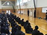 校長先生の話の後、生徒会執行部から、5月の生活目標『学校生活に積極的に参加しよう』についての話がありました。重点項目「部活動への積極的な参加」「時間の有効な使い方」を1人1人がしっかりと意識してください。