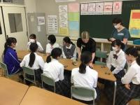 先週、錦丘中学校の英語部は、錦丘高校の英語部に招待されて、高校生の英語劇を見に行ってきました。今日は、高校生が中学生の英語部にボランティアに来てくれ、中学校ALTのカリス先生と高校ALTのハナ先生も一緒に、英語活動をしました。
