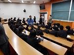 金沢大学では、概要説明を受けた後、4グループに分かれて実際の講義を参観しました。休憩をはさんで大学紹介、大学生との懇談、キャンパス散策と続きました。3年生にとって、3年半後の自らの進路を考えるよい機会となりました。金沢大学の教職員、大学生のみなさん、本当にありがとうございました。