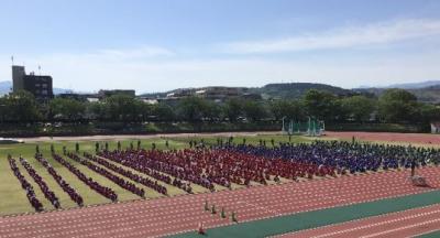 第5回校内スポーツフェスティバルが金沢市営陸上競技場で開催されました。爽やかな風が吹く晴天の下、中学生・高校生合わせて1300人を超える生徒達がのびのびと競技に参加しました。
