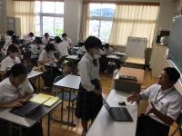3年生は個人で、自分の課題研究テーマについてまとめていました。1学期の学習内容を夏休み中にも継続して深めてきたことから、自分の研究内容が明確になってきている様子でした。先生に自分が困っていることを話し助言を受けながら思考を整理し、少しずつ自信をもって研究を進めていく様子も見られました。
