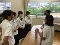 先週、錦丘中学校の英語部は、錦丘高校の英語部に招待されて、高校生の英語劇を見に行ってきました。今日は、高校生が中学生の英語部にボランティアに来てくれ、中学校ALTのカリス先生と高校ALTのハナ先生も一緒に、英語活動をしました。