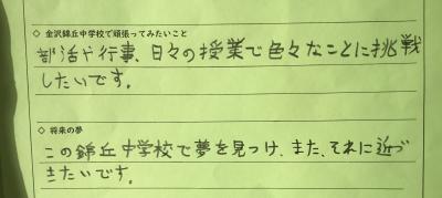 ~錦丘中学校で頑張ってみたいこと・将来の夢~
