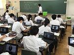 生徒達は今日も、各授業に意欲的に取り組んでいました。写真は、本日の授業の様子です。3年数学の授業では、自動車で時速100㎞で走行中の場合、前方の車とはどれだけの車間距離が必要かを、関数を使って考えていました。自分達の身近な生活の中にも、数学が活かされています。