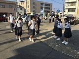 本校の保護者の方とボランティアで参加した生徒が、早朝よりさわやかな挨拶をかけあいました。