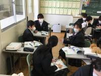 1年生の社会科では、小学校の復習も兼ねながらクイズ形式で都道府県名を確認しました。「『川』のつく県は3つあるよ」という先生からの問いに「2つ分かったのに、石川県に気づかなかった…」等と言いながら、グループで個々の知識を積極的に出し合い、楽しく学んでいました。後半ではchromebookを使って場所を当てはめるパズルをしました。都道府県の形がぴったり当てはまると、嬉しくなりますね。
