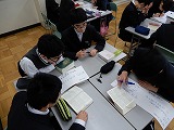 12月2日(月)と4日(水)に国語科の発展授業として、金沢錦丘高等学校の北島副校長先生による授業が行われました。「ことば」の意味が、国語辞典によって表現が違ってくることに着目した、知的好奇心を揺さぶる素敵な授業でした。3年生のどのクラスも意欲的に取り組む姿が見られました。
