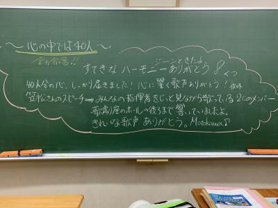 合唱リーダーの皆さんもとてもがんばってくれました。金沢錦丘中にすてきな1ヶ月をありがとう。