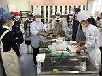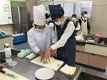 本日午後から、2年生専門学校別キャリア体験プログラムの「調理体験」を、3名の講師に来校いただき、本校調理室で行いました。調理体験を選択した生徒達は、4人ずつのグループに分かれ、『てりたまサンド』作りにチャレンジしました。鶏もも肉を焼いている時の香ばしいにおいに食欲をそそられました。どのグループのサンドも見事な出来映えでした。黙食での試食でしたが、みんなの顔はとても満足そうでした。試食後は、質疑応答等で調理の仕事への理解を深めました。