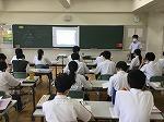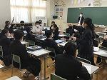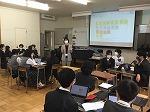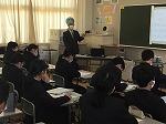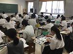 本日1年生は、水曜日に引き続き、3、4限目に「未来につなぐ石川の技」職業講話②を実施しました。今日は、丸八製茶場代表取締役 丸谷誠慶さん、和菓子「板屋」4代目店主 板村壮麻さん、日本刀職人刀工 松田恒治さん、(株)ニッコー人事部採用育成主任 道田敦史さんの4名に、講師として来校いただきました。各教室では、それぞれの講師のお話を真剣に聴き、熱心にメモを取る姿が見られました。また質疑応答でもたくさんの質問を講師の方にしている様子も印象に残りました。大変ご多用の中、来校いただきました講師の皆様、本当にありがとうございました。