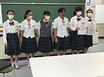 続いて、前期生徒会長より、中高の公式キャラクターの発表及び前期活動への協力のお礼がありました。前期生徒会役員の皆さん、前期の活動、本当にお疲れ様でした。後期生徒会の皆さんを、力強く後押ししてあげてください。