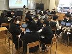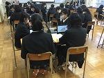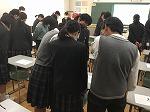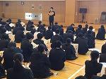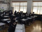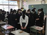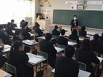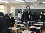 1年生は7限目に、学年集会を視聴覚室にて行いました。新旧各クラスリーダーからの挨拶、母校訪問に向けてのマナーの確認をしました。挨拶を含め、訪問先の相手の方々に対してよい印象を持ってもらえる言葉や行動は、とても大切なことですね。母校訪問では、対応していただく方々に感謝の気持ちを持って、自分達の成長した姿を見せてきてください。また6限目には、出身校別での打合せ、身だしなみの確認も行いました。
